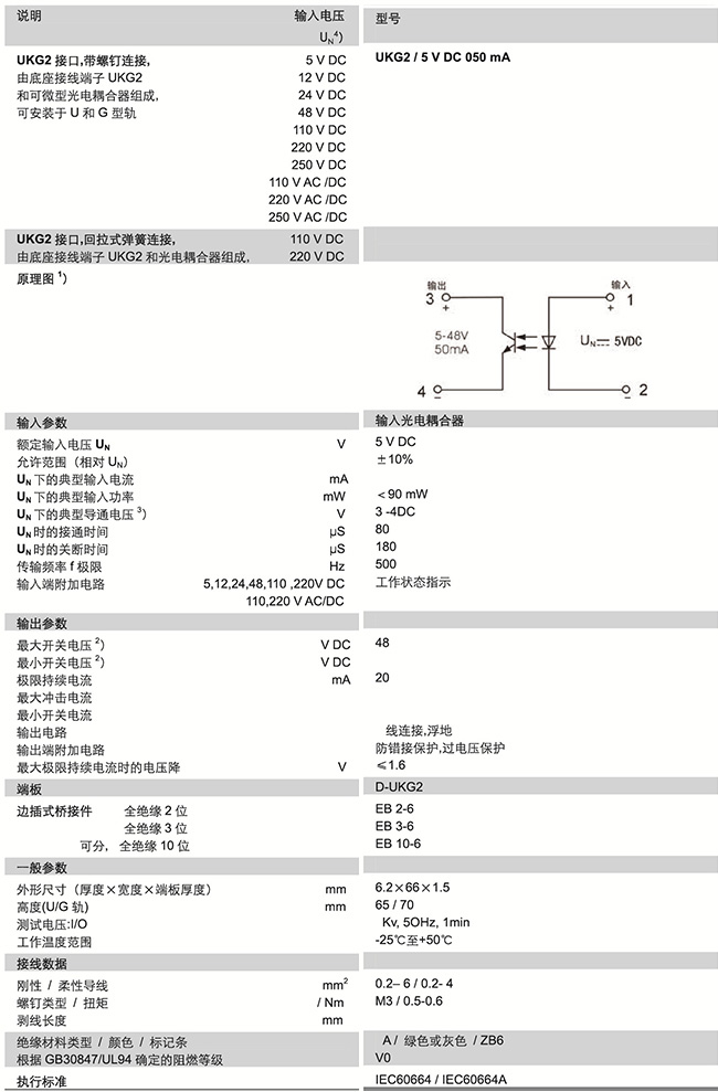 UKG2系列 帶光電耦合器-UKG2/5...VDC 050MA