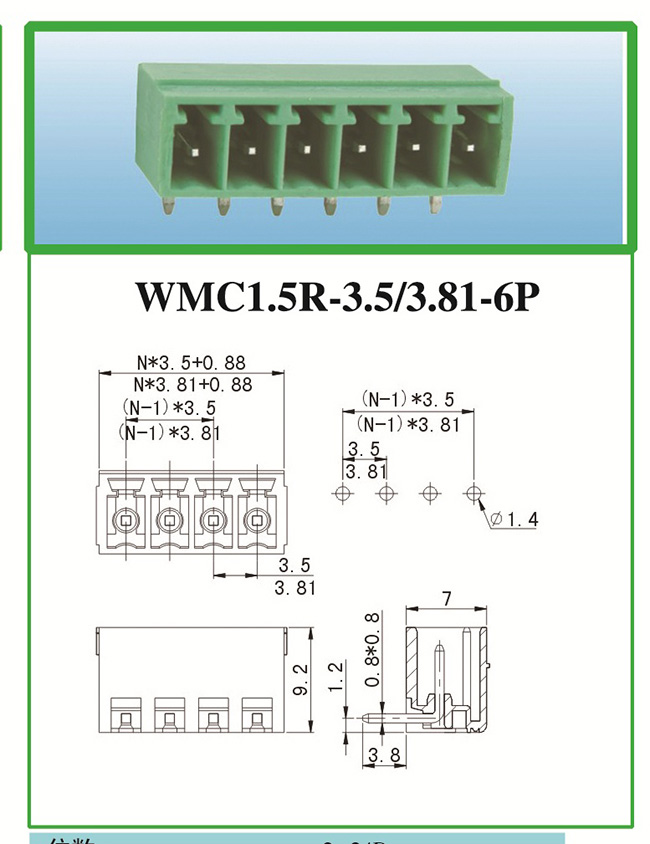 WMC1.5R-3.5/3.81-6P PCB線路板接線端子