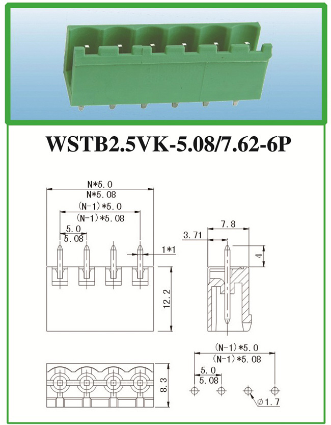 WSTB2.5VK-5.08/7.62-6P PCB線路板接線端子